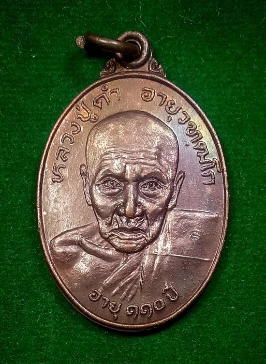 เหรียญหลวงปู่ดำ อายุวฑฺฒโก อายุ 110 ปี วัดคำแก้ว จ.ยโสธร ปี 2521 |