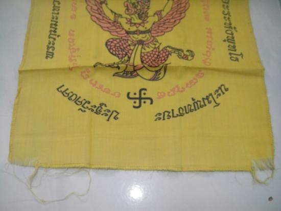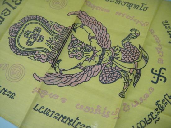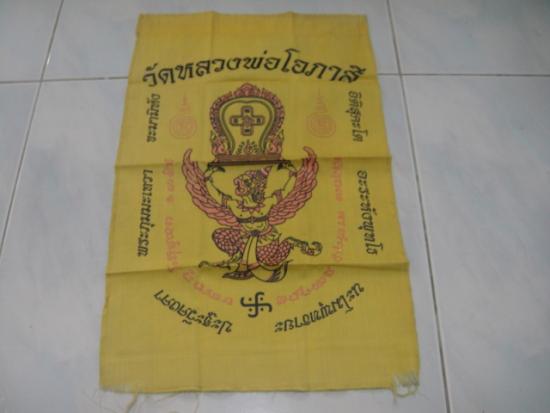 วัดใจเคาะเดียว........100.......ผ้ายันต์ครุฑแบกเสมา วัดหลวงพ่อโอภาสี อาศรมบางมด ขนาดประมาณ 11 x 18 นิ้ว สวย |