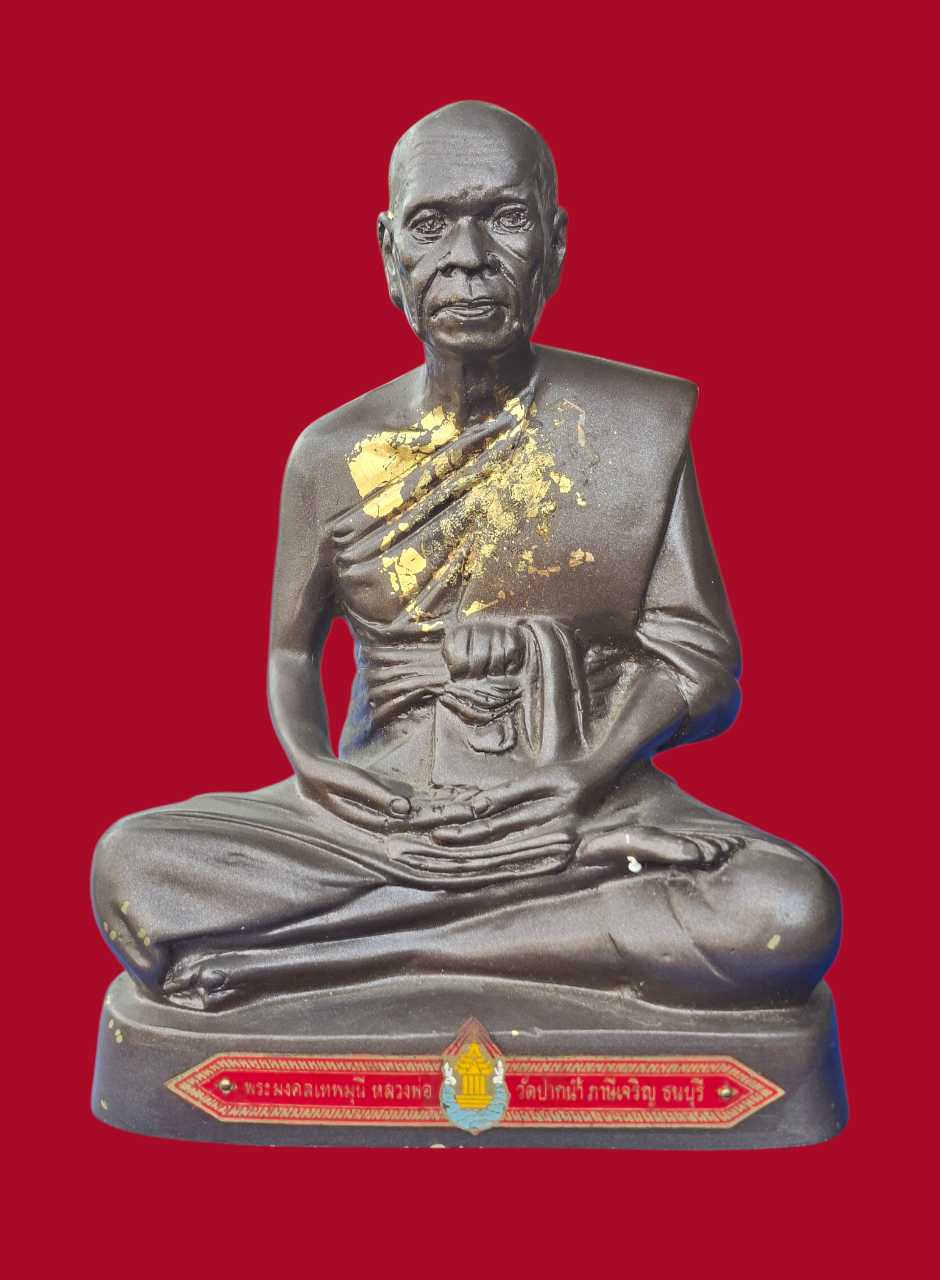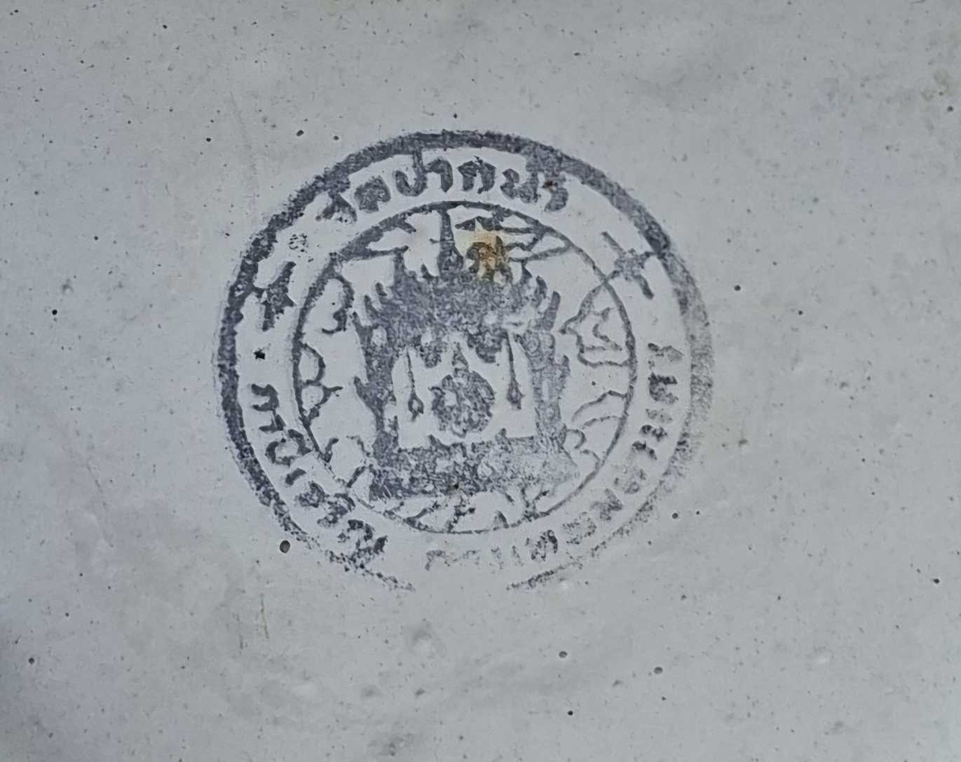 พระบูชา หลวงพ่อสด วัดปากน้ำ ไม่ทราบปี หน้าตัก 6 นิ้ว สูง 8 นิ้วครึ่ง ปั๊มตรายางวัด กรุงเทพฯ