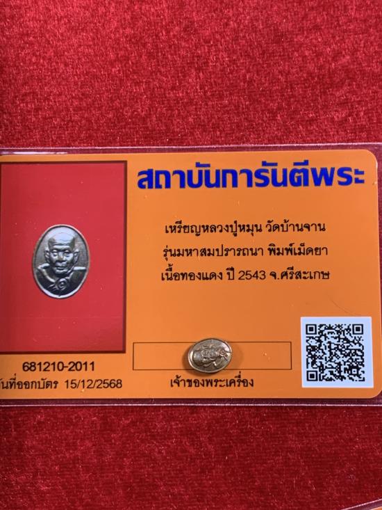 พระหลวงปู่หมุน วัดบ้านจานปี 2543 เนื้อทองแดง พิมพ์ เม็ดยา รุ่นมหมสมปรารถนา สวยมาพร้อมบัตรรับรองสบายใจได้ครับ