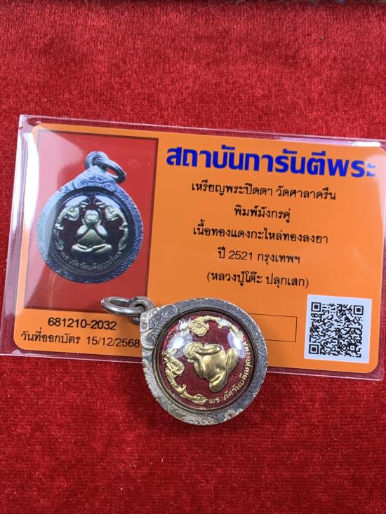 พระปิดตามังกรคู่ วัดศาลาครืน ปี 21 เนื้อทองแดงกะไหล่ทองลงยาแดง สวย ตอกโค๊ต มาพร้อมบัตรรับรองสบายใจได้ครับ