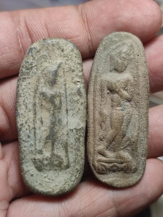 พระลีลาฝักดาบ กรุดอนลาน สุโขทัย คู่ พิมพ์เล็กปีกกว้าง(หายาก) +พิมพ์ใหญ่ กดลึกดีครับ