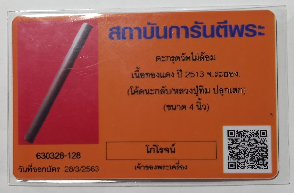 **วัดใจ**ตะกรุดวัดไผ่ล้อม เนื้อทองแดง ปี.2513 จ.ระยอง **ขนาด 4 นิ้ว** ((โค๊ต นะ.กลับ หลวงปู่ทิม ปลุกเสก))