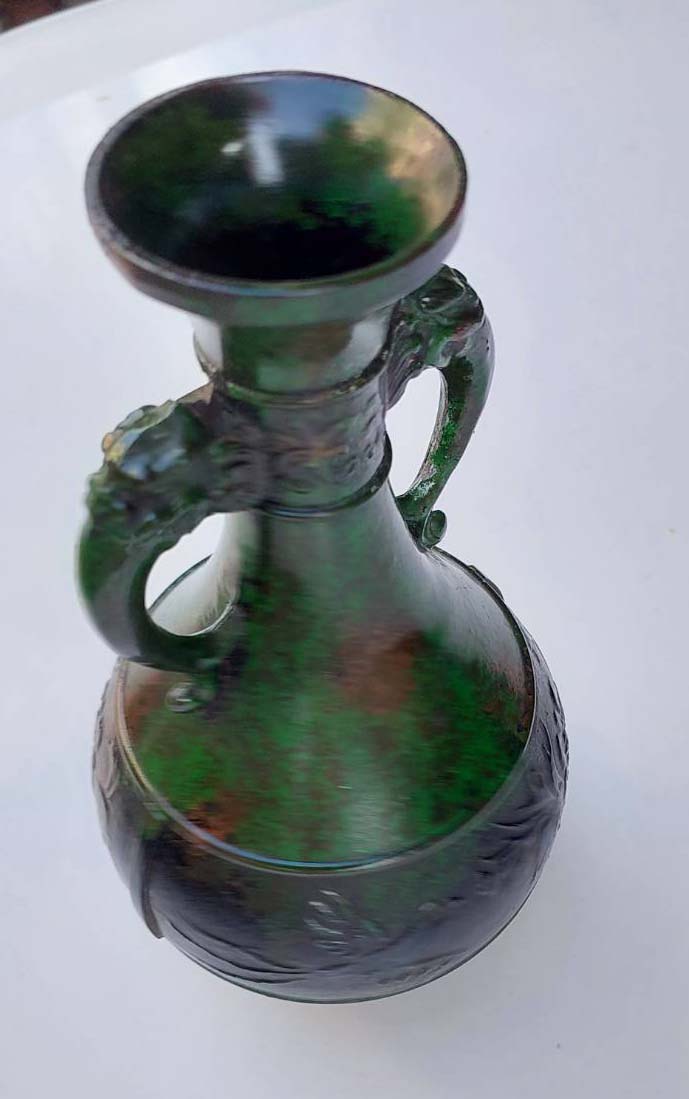 **วัดใจ***แจกันทองสัมฤทธิ์เก่าทรงโบราณ หูมังกร สูง 8.5 นิ้ว ปาก 2.5 นิ้ว