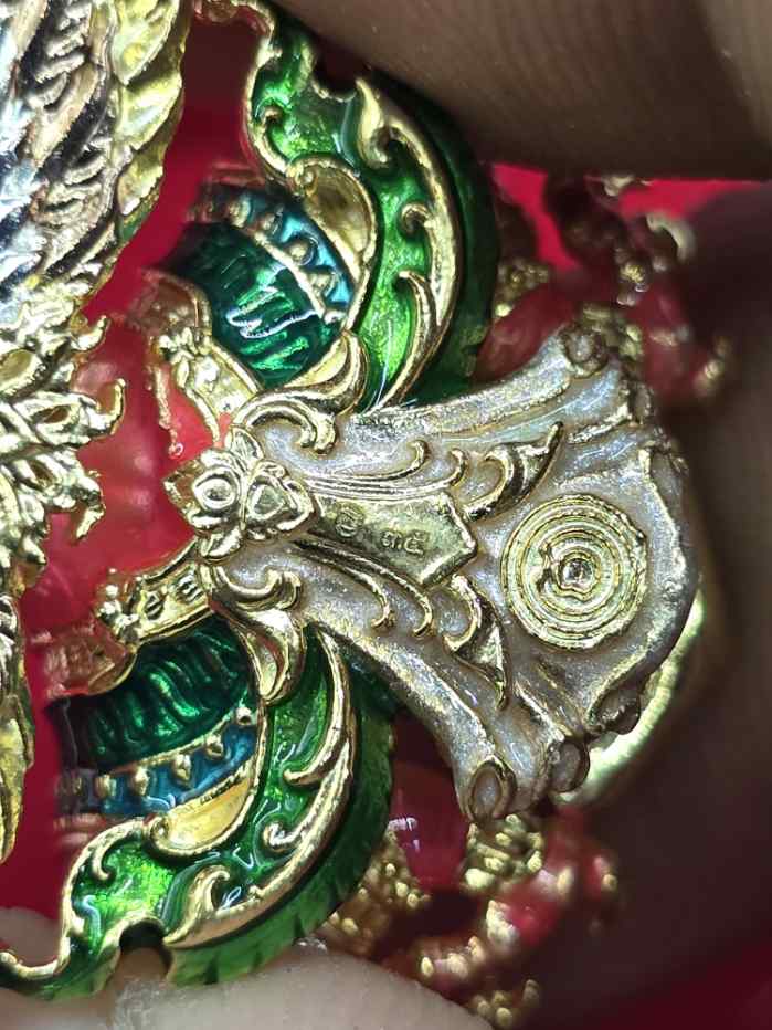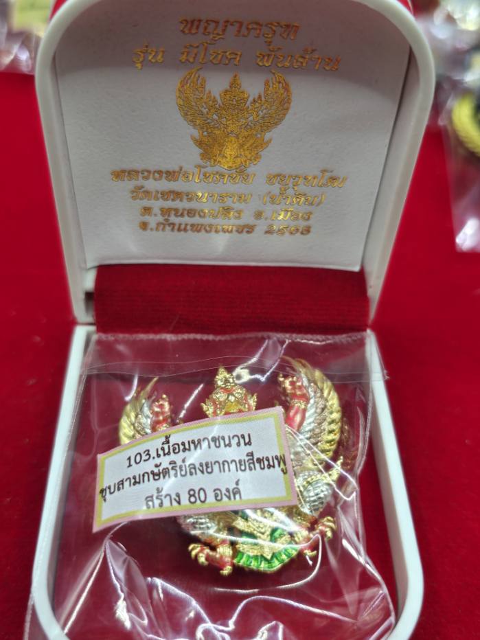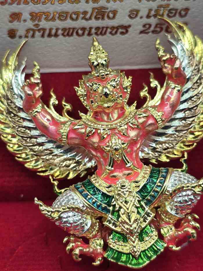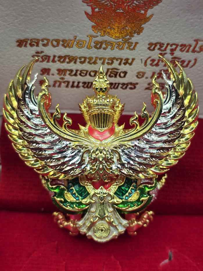 พญาครุฑ รุ่นมีโชคพันล้าน หลวงพ่อโชคชัย วัดน้ำดิบ เนื้อมหาชนวนชุบ3กษัตริย์กายชมพู สร้าง 80 องค์ หมายเลข 35