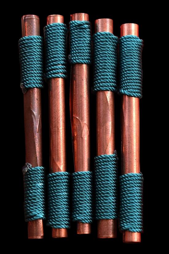ชุด 5 ดอก...ตะกรุดประสานใจ (หญิงร่ำไห้ ชายร่ำหา) ปี 2558 หลวงปู่บัว วัดดอนขวาง จ.นครราชสีมา พร้อมซองรูปเดิมจากวัด สภาพพระตามรูปที่ลงทุกประการ (ขนาดยาว 2.5 นิ้ว)