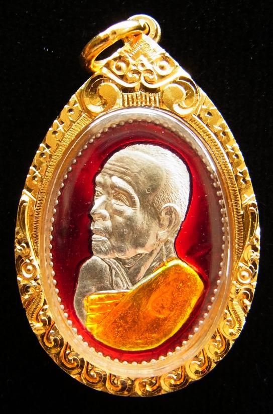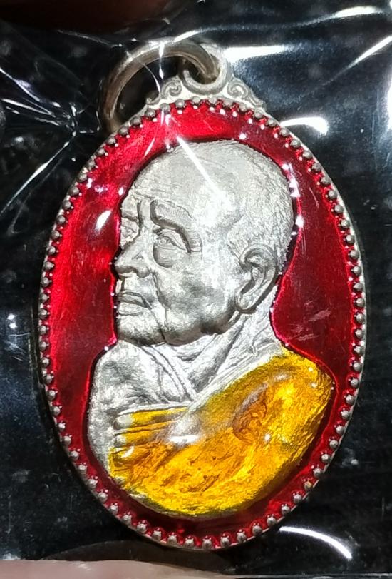 เหรียญหันข้าง เนื้อเงินลงยา ปี 2550 หลวงปู่แผ้ว ปวโร วัดรางหมัน ลงยาสีแดง หมายเลข 127