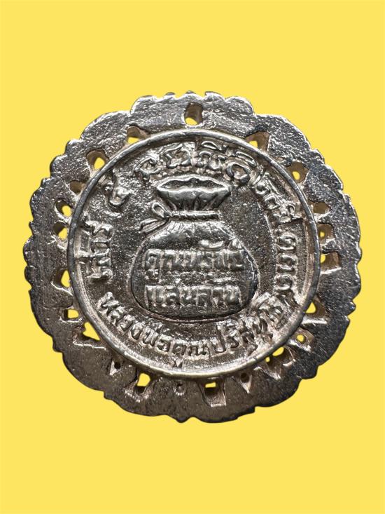 เหรียญหล่อเนื้อเงิน รุ่นคูณพันล้าน ปี 2537 หลังถุงเงินถุงทอง |