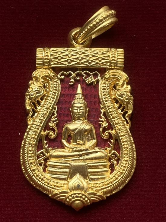 เคาะเดียวแดง เหรียญเสมาหลวงพ่อโสธร รุ่นมหามงคลย้อนยุค เลข 1234 เนื้อ ชุบทองลงยาแดง