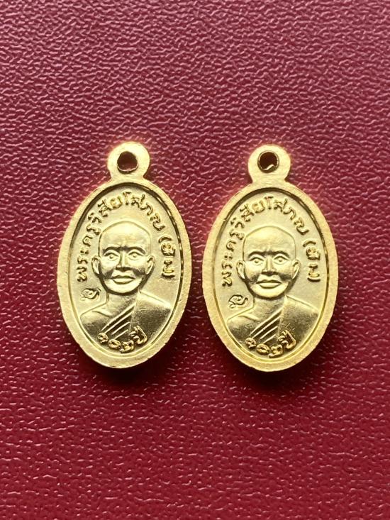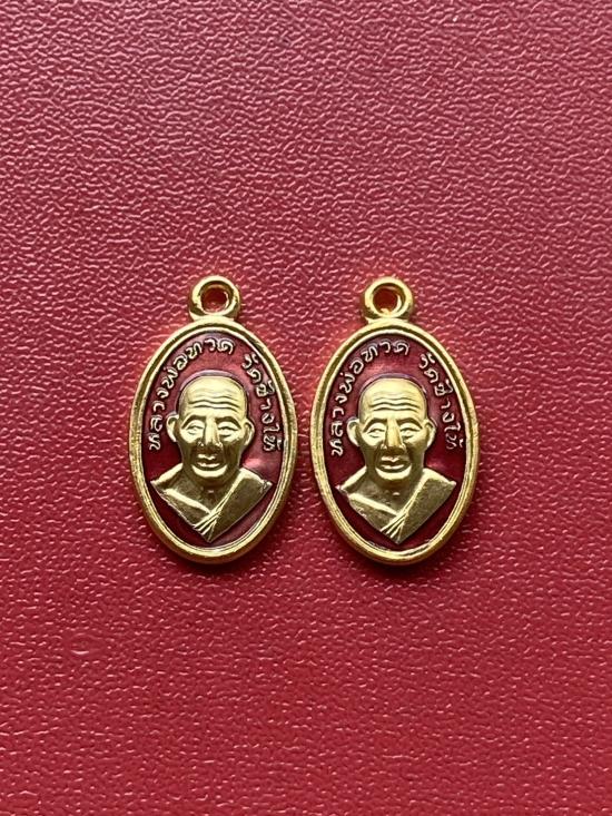 เคาะเดียวแดง เม็ดแตง 2องค์หลวงปู่ทวด รุ่น102ปี เนื้อ ชุบทองลงยาแดง