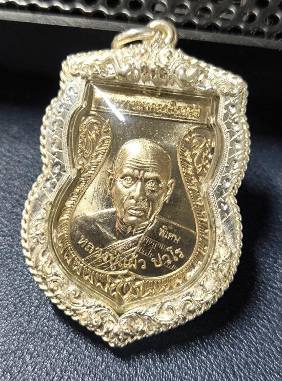เหรียญเสมา100ปี ที่ระลึกงานอุปสมบท พ.ศ.2565 หลวงปู่แผ้ว ปวโร เนื้ออัลปาก้า แยกชุดกรรมการ เลี่ยมเงิน สวยครับ