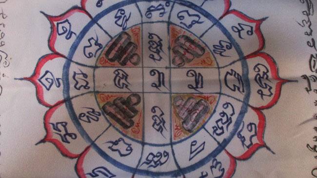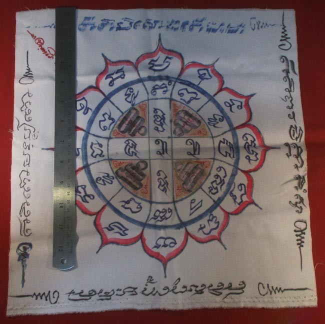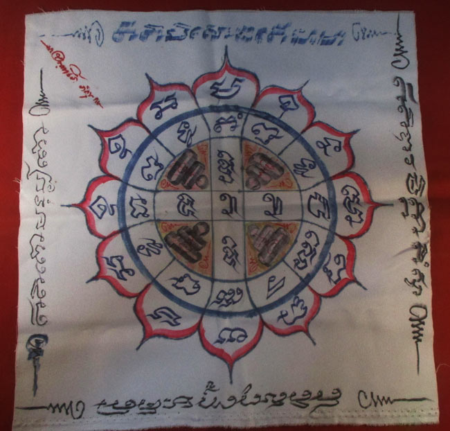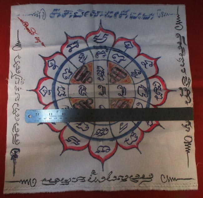 ผ้ายันต์ ไม่ทราบที่ จารยันต์ด้วยมือ ครับ