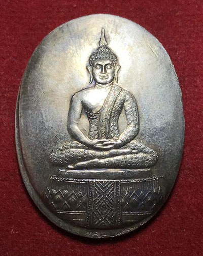 เหรียญแอ่งกระทะพระแก้วมรกต หลวงพ่อพรหม วัดขนอนเหนือ กะไหล่เงินโบราณ