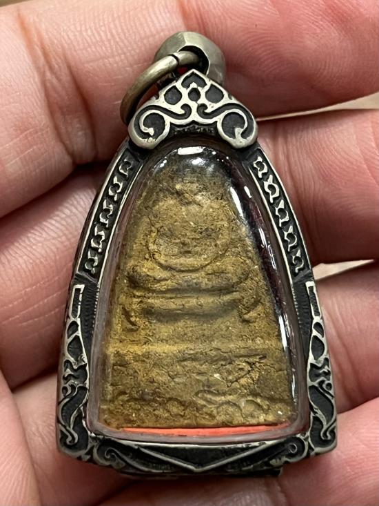 พระผงว่านขมิ้น พระครูสุธรรมโกวิท สวยเดิม ไม่ทราบที่ พร้อมเลี่ยมเงินแป๊ะตั๊ง