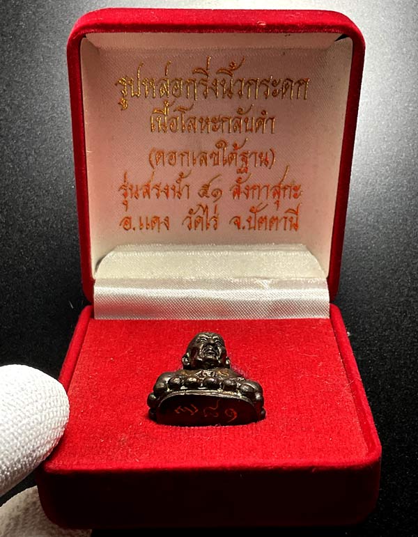 เคาะเดียวค่ะ! ---> รูปหล่อกริ่งนิ้วกระดก หลวงปู่ทวด อาจารย์แดง วัดไร่ เนื้อโลหะกลับดำ (ตอกเลขใต้ฐาน หมายเลข 2670 ) รุ่นสรงน้ำ 51 ลังกาสุกะ เริ่มที่100!!! มีพระเครื่องวัดใจหลายรายการกดที่ค้อนดูได้ค่ะ |