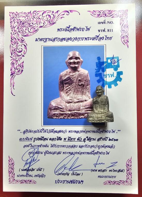 ชรฟ.811)..พระหล่อรูปเหมือน หลวงพ่อพรหมเนื้อชาร์ฟรถไฟ ตอกโต๊ต พ ใต้ฐาน จารตัว อุ ศิษย์รถไฟสร้างปี ๒๕๑๓ สวยๆ พร้อมใบสูจิบัตรฯ