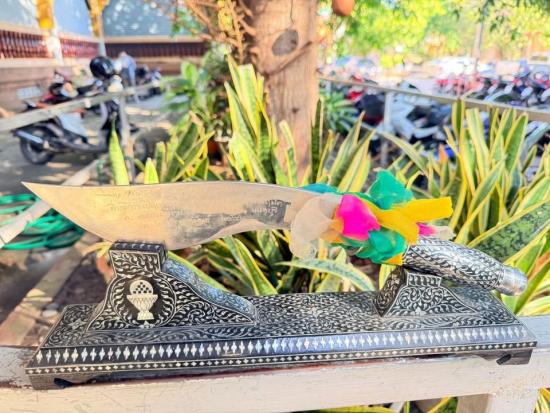 วัดใจ100แดง มีดตัดหวายด้ามติดมุกพร้อมแท่นยาวประมาร17นิ้ววัดอ่วมอ่อง ประชานฤมิตร จัดไปคับ
