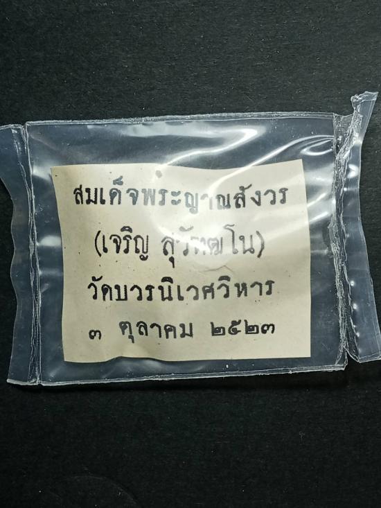 เคาะเดียว มาพร้อมถุงพลาสติคซีลเดิมและใบฝอย พระปิดตายันต์ดวงเล็ก ตะกรุดเงิน เนื้อผงใบลานดำ(ผงใบลานปลดหนี้)สมเด็จพระญาณสังวร(เจริญ สุวัฑฒโน ปธ.๙) วัดบวรนิเวศวิหาร ๓ ตุลาคม ๒๕๒๓ |
