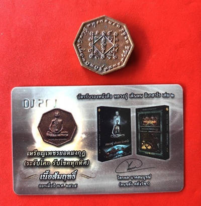 เหรียญสมนาคุณเนื้อสัมฤทธิ์ (เหรียญหล่อหลวงปู่ เดินหน อิเกสาโร รุ่นแรก เพชรยอดมงกุฎ (ระงับโศก รับโชคทุกทิศ) พร้อมบัตรรับรองหนังสือ หลวงปู่ เดินหน อิเกสาโร เล่ม 2 หมายเลข 13510 |