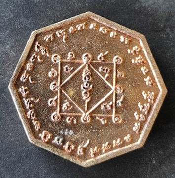 - ด้านหลังลงยันต์มหาราช ( ราชเสน่ห์ )