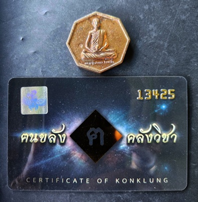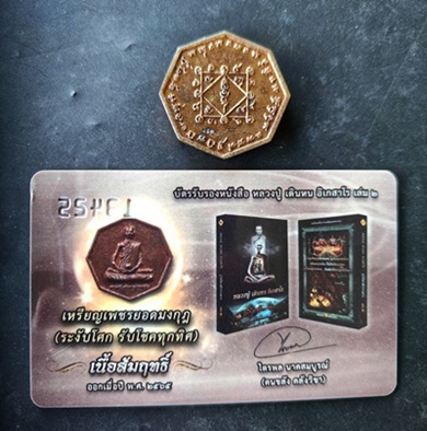เหรียญสมนาคุณเนื้อสัมฤทธิ์ (เหรียญหล่อหลวงปู่ เดินหน อิเกสาโร รุ่นแรก เพชรยอดมงกุฎ (ระงับโศก รับโชคทุกทิศ) พร้อมบัตรรับรองหนังสือ หลวงปู่ เดินหน อิเกสาโร เล่ม 2 หมายเลข 13425 |