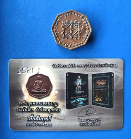 เหรียญสมนาคุณเนื้อสัมฤทธิ์ (เหรียญหล่อหลวงปู่ เดินหน อิเกสาโร รุ่นแรก เพชรยอดมงกุฎ (ระงับโศก รับโชคทุกทิศ) พร้อมบัตรรับรองหนังสือ หลวงปู่ เดินหน อิเกสาโร เล่ม 2 หมายเลข 13521