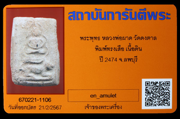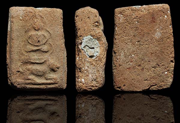พระเนื้อดิน หลวงพ่อผาด ปี 2474 วัดดงตาล จังหวัดลพบุรี พิมพ์ทรงเสือ ผงอุดเดิม สภาพสมบูรณ์ พร้อมบัตร G-pra ครับ