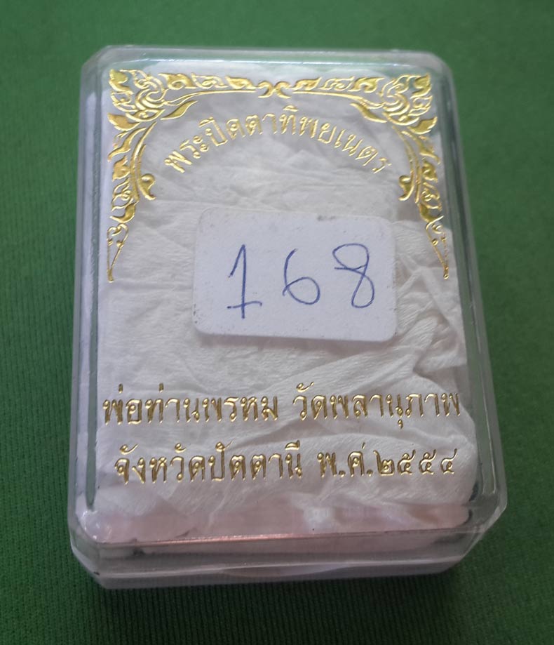 *** 168 *** พระปิดตาทิพยเนตร พ่อท่านพรหม วัดพลานุภาพ จ.ปัตตานี เนื้อเงินยวง หมายเลขมงคล 168 สภาพสวยไม่ผ่านการใช้พร้อมกล่องเดิม