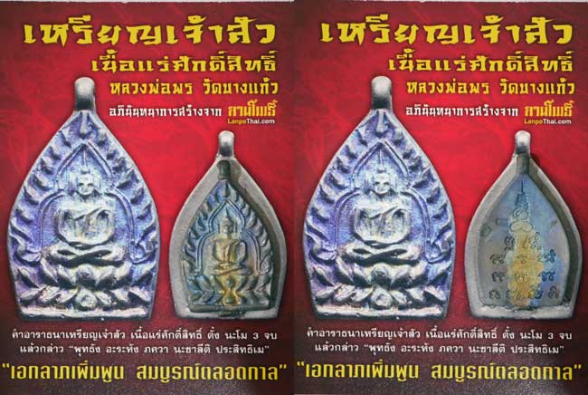 เหรียญเจ้าสัวรุ่นแรกของหลวงพ่อพรและที่สำคัญ ที่สุดคือ "จัดสร้างเท่าจำนวนที่สั่งจองเท่านั้น" ไม่มีเผื่อเหลือเผื่อขาด วันนี้ชื่อเสียงของ พระครูพิจิตรสรคุณ (พร ปภากโร) แห่งวัดบางแก้ว อ.นครชัยศรี จ.นครปฐม ดังกระหึ่มทั่วสารทิศ ในฐานะพระปฏิบัติดีปฏิบัติชอบและพุทธาคมแกร่งกล้าไม่เป็นรองใคร ปลุกเสกวัตถุมงคลทุกรุ่นล้วนศักดิ์สิทธิ์เข้มขลัง เป็นที่แสวงหาของผู้ศรัทธาและนักสะสมวัดบางแก้ว *พร้อมซองเดิม ๆ ที่หลวงพ่อพรปลุกเสกแล้ว*