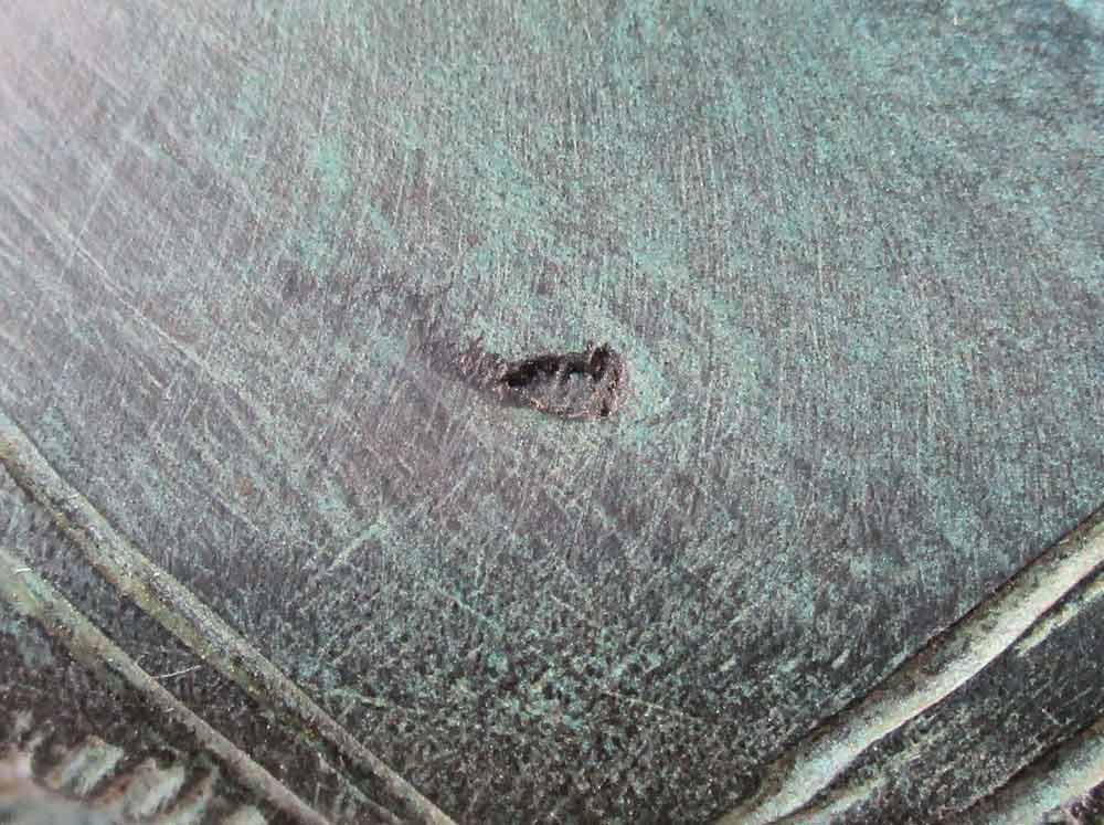 ภาพใต้ฐานขนาด 4 นิ้ว X 4 นิ้ว อุดปูน โรยผงแร่ ฝังวัตถุมงคล 5 อย่าง !!