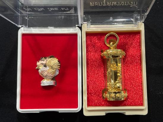 !!!!แพ็กคู่ !!!!! ไก่ 3 k รุ่นเงินไหลมา หมายเลข 2579 + ตะกรุดนางกวัก หมายเลข 9869 หลวงปู่ศิลา สิริจันโท พร้อมกล่อง