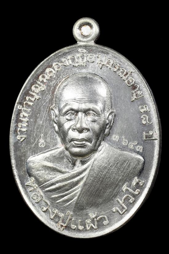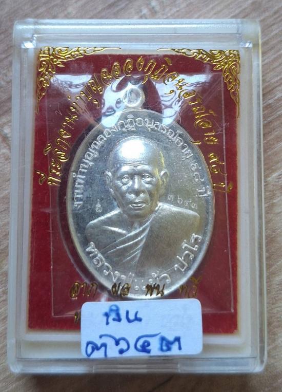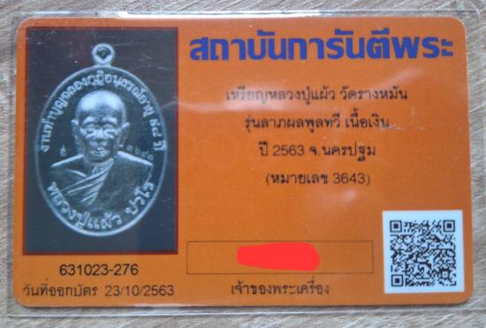 เหรียญลาภผลพูลทวี หลวงปู่แผ้ว ปวโร ปี 63 เนื้อเงิน # 3643 พร้อมบัตรGและกล่องเดิมครับ