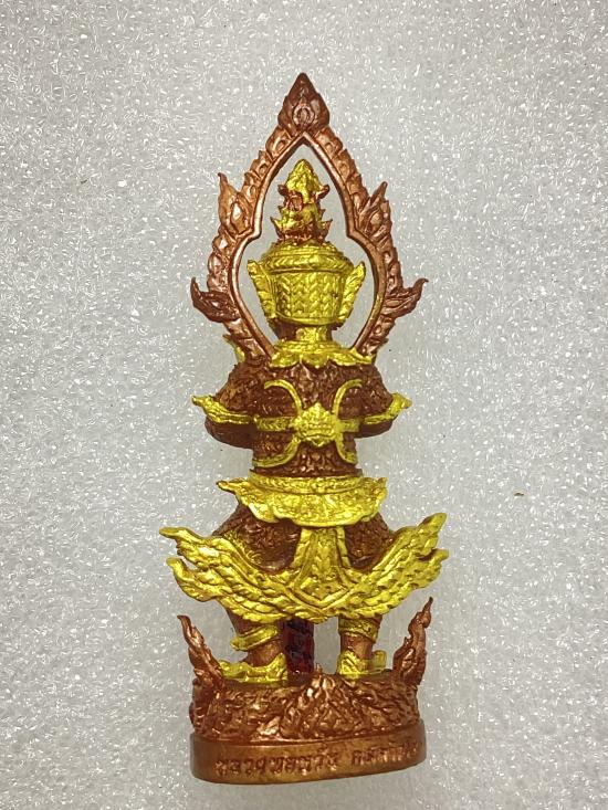 ท้าวเวสสุวรรณ รุ่นคลังสมบัติ รุ่น2 หลวงพ่อหวั่น วัดคลองคูณ จ.พิจิตร สูง 6.5 ซ.ม. เนื้อทองแดง ลงยากระบองแดง กล่องเดิม