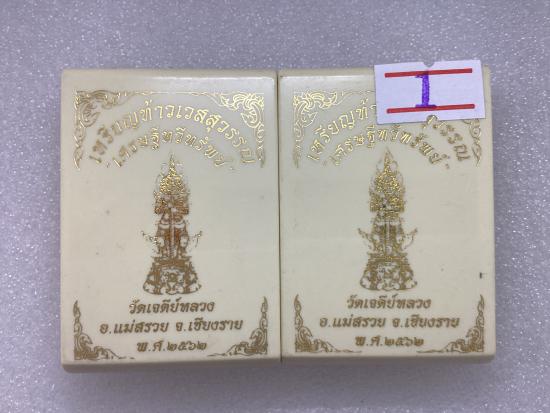 เหรียญท้าวเวสสุวรรณ เศรษฐีทวีทรัพย์ วัดเจดีย์หลวง จัด.เชียงราย กล่องเดิม ( 2เหรียญ )