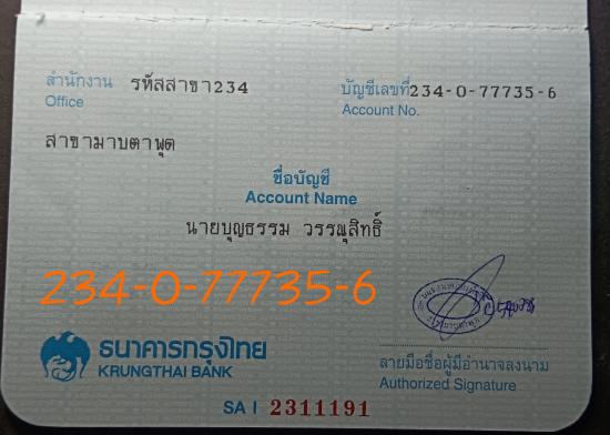 ขอเปลี่ยน บช เป็น ธนาคารกรุงไทย เลข บช 234-0-77735-6 ครับผม