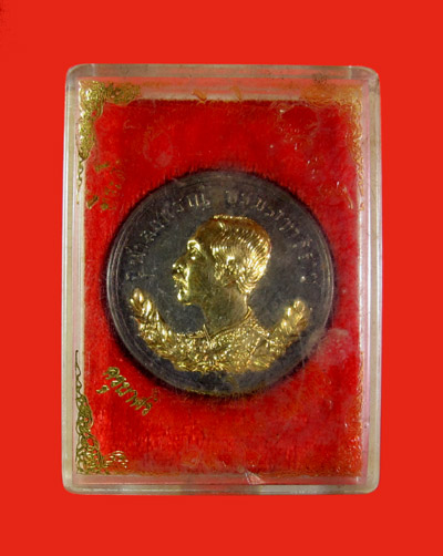 - เหรียญ"ที่ระลึกเฉลิมพระเกียรติ เสด็จพ่อ ร.5" พุทธาภิเษก ครูบาศรีนวล วัดเพลง จ.นนทบุรี ปี 2536 กะไหล่เงิน ชุบทอง (บางส่วน) สวยมาก กล่องเดิมๆ