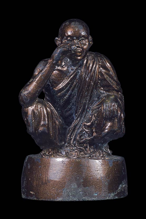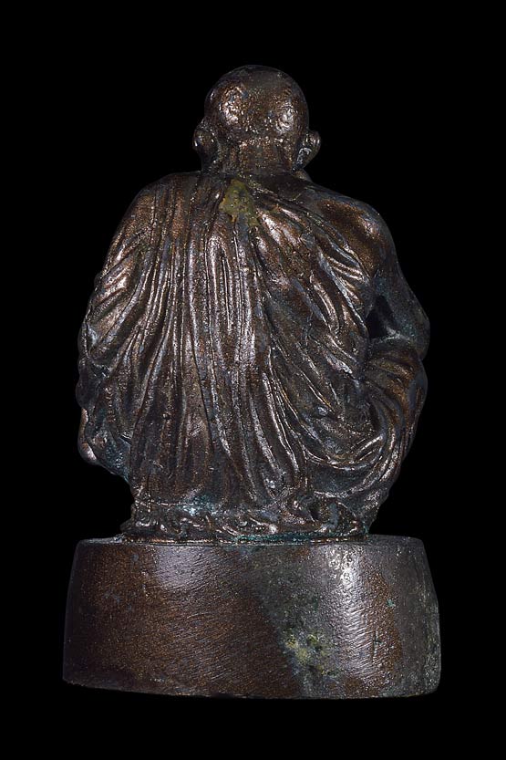พระบูชารูปเหมือนตั้งหน้ารถ ( ฐาน 1.5 นิ้ว , สูง 2 นิ้ว ) รุ่น เสาร์ 5 ( เนื้อโลหะรมน้ำตาล , ใต้ฐานปิดแผ่นยันต์ทองเหลือง ) พ.ศ.2535 ** 1 **