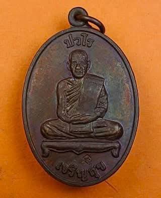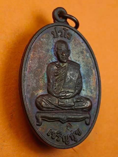 เหรียญเจริญสุข(ที่ระลึกฉลองหอระฆัง)เนื้อทองแดงรมดำ หลวงปู่แผ้ว ปวโร วัดรางหมัน..สร้างปี2552