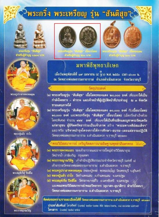 ทำพิธีพุทธาภิเษก ในวันพฤหัสบดี ที่ 19 เมษายน พ.ศ.2550