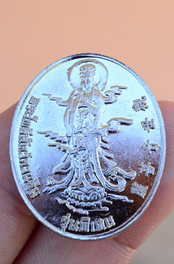 เหรียญเทพจีน ไต้ฮ่องกง สมาคมเม่งอิ้วการกุศล ปี2556 หลัง พระโพธิ์สัตว์ กวนอิม รุ่นพิเศษ เนื้อทองแดงกะไหล่เงิน สวยครับ