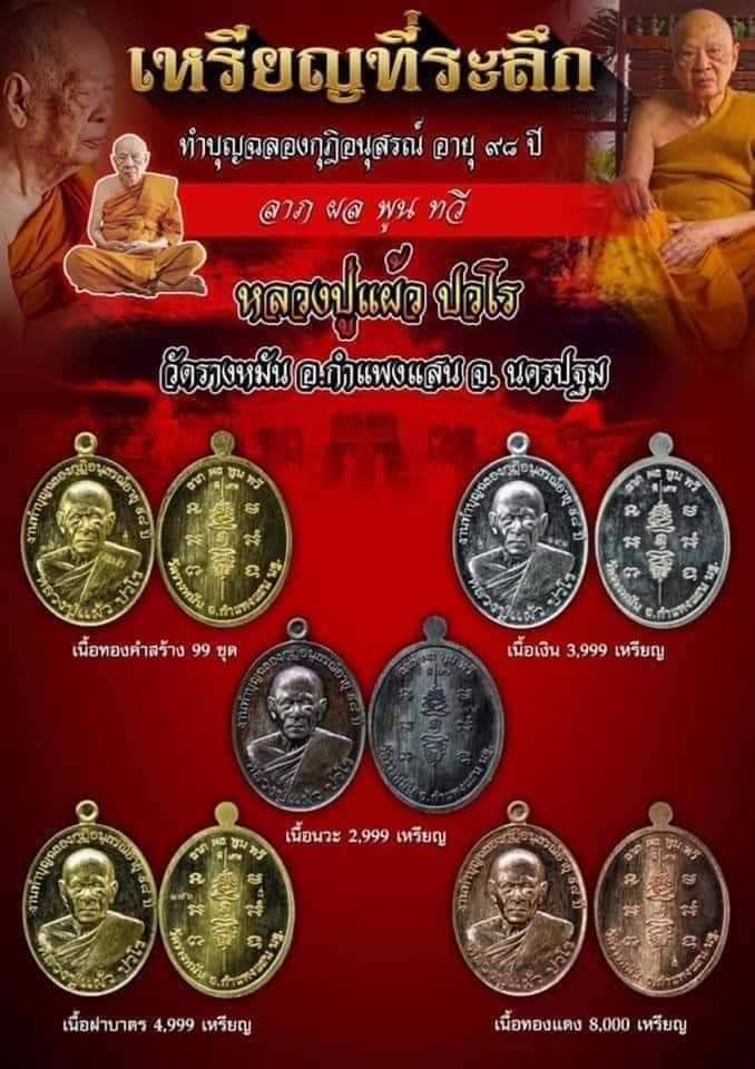 @@@วัดใจแดงเคาะแรก@@@เหรียญลาภผล พูนทวี หลวงปู่แผ้ว วัดรางหมัน นครปฐม ปี63 เนื้อเงิน นอนกล่อง สวยครับ