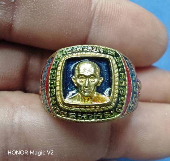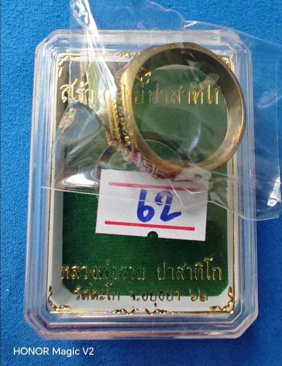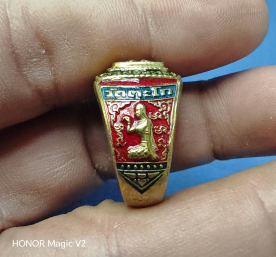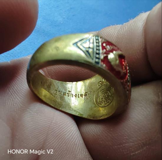 แหวน รุ่นสร้างเจดีย์ ปี 2562 ลงยาสีแดง หลวงพ่อรวย วัดตะโก จังหวัดอยุธยา ไซส์ 62 สภาพใหม่