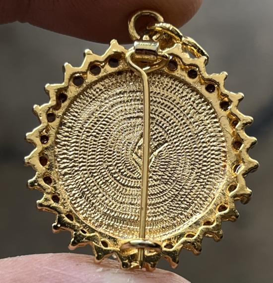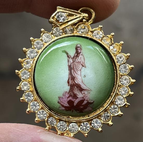 ล็อกเก็ตเจ้าแม่กวนอิมยืน ตัวเรือนชุบทองฝังเพชร สวยเดิม