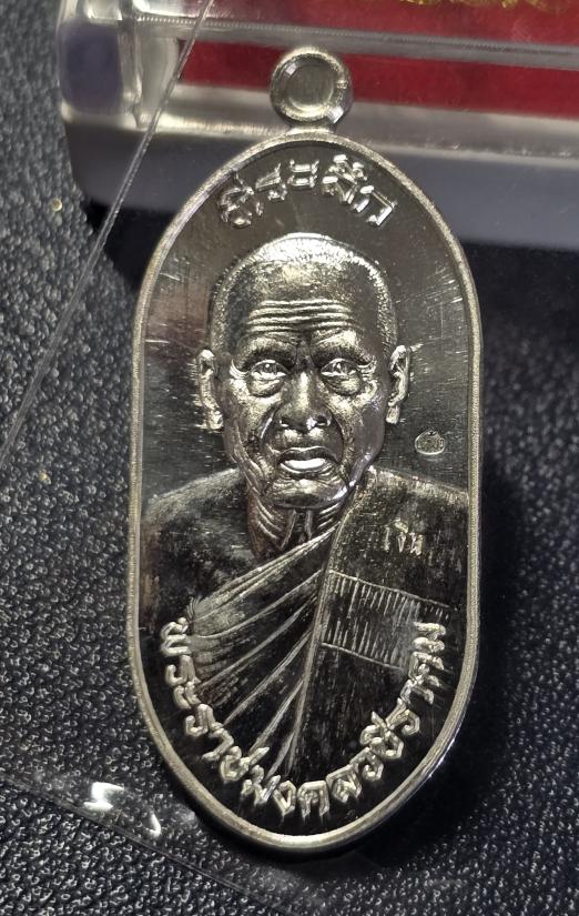 เหรียญใบพาย เนื้อเงิน หลวงปู่แผ้ว ปวโร วัดรางหมัน ปี66 พร้อมกล่อง สวยๆ