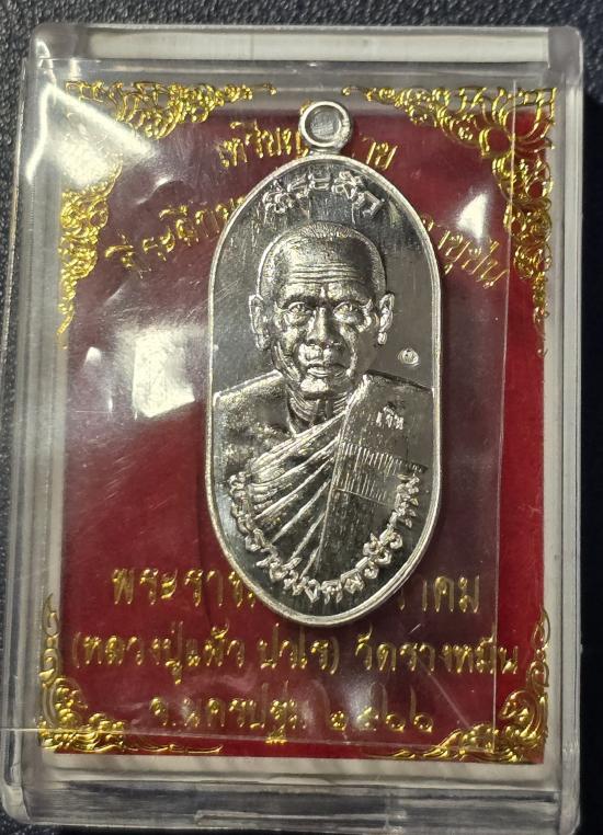 เหรียญใบพาย เนื้อเงิน หลวงปู่แผ้ว ปวโร วัดรางหมัน ปี66 พร้อมกล่อง สวยๆ หมายเลข 1785 ออกจากวัด 3,500 บาท