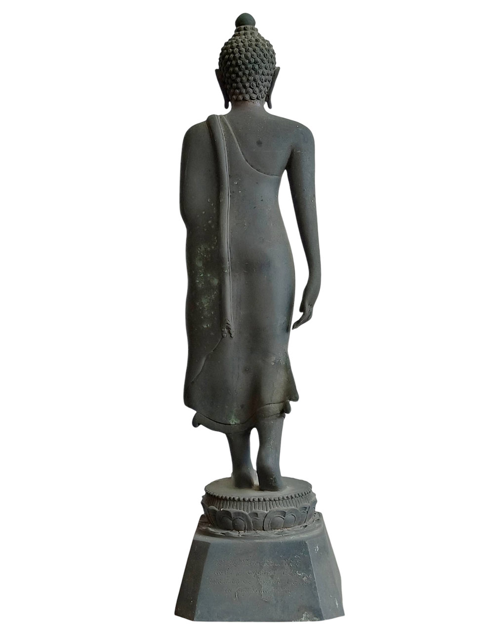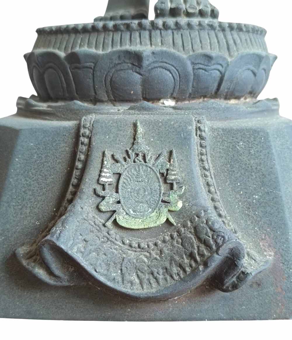 เนื้อโลหะรมดำมันปู ผิวแห้งหิ้ง สูงรวมฐาน 18.5 นิ้ว สภาพองค์พระสวยสมบูรณ์ งดงาม !!