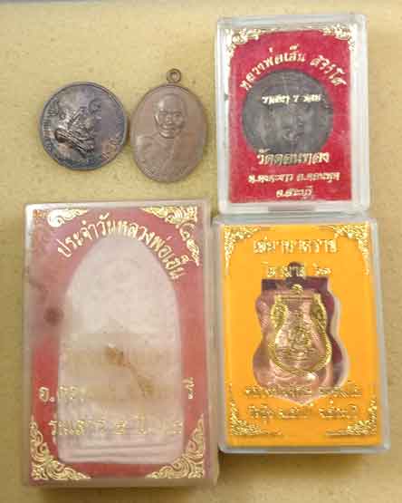 เหรียญ 3 เหรียญ + พระผง ประจำวัน หลวงพ่อเฮ็น วัดดอนทอง สระบุรี + เหรียญหลวงพ่อจักษ์ วัดชุ้ง สระบุรี |