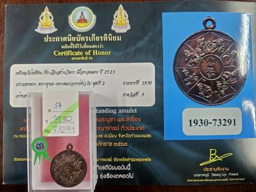 เหรียญโป๊ยเซียน ที่ระลึกสร้างวิหาร เนื้อทองแดง ปี 2523 เป็นเหรียญที่จัดสร้างขึ้นเพื่อเป็นที่ระลึกในงานสร้างวิหารและหล่อพระประธาน โดยมีพิธีปลุกเสกใหญ่ทั้งแบบไทยและจีน และมีเกจิอาจารย์ชื่อดังหลายท่านร่วมพิธี