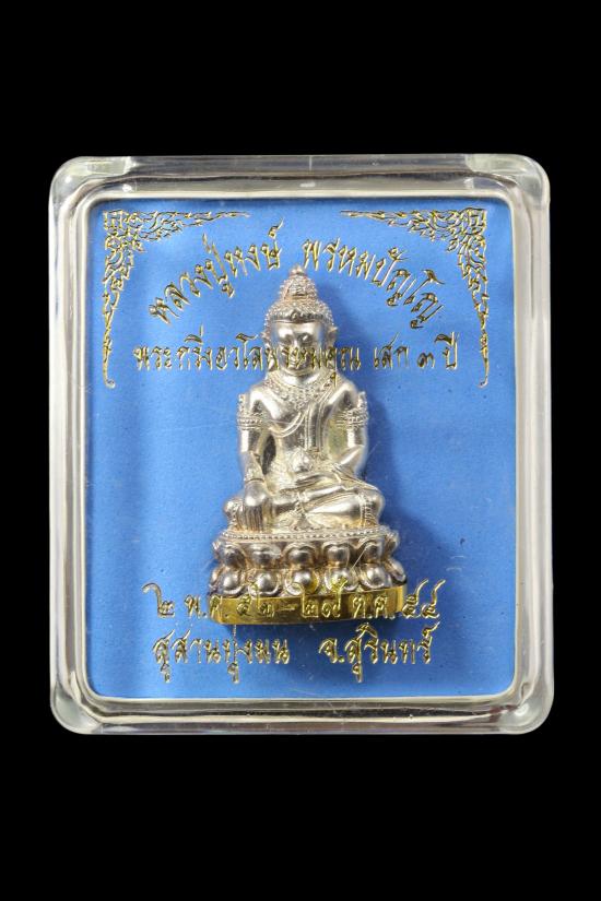 พระกริ่งอวโลพรหมคุณ หลวงปู่หงษ์ พรหมปัญโญ สุสานทุ่งมน ปี 2554 no.34 เนื้อเงินก้นครอบทองคำ มีจารมีเกศา จำนวนสร้าง 199 องค์ พร้อมกล่อง สวยครับ