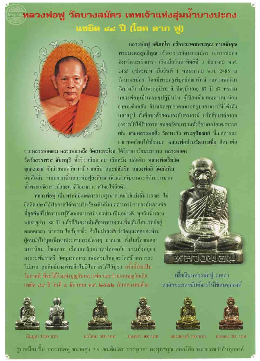 รูปเหมือนปั๊ม ( ทองแดง ) รุ่นแรกแซยิด 88 ปี (โชค ลาภ ฟู) หลวงพ่อฟู วัดบางสมัคร จ.ฉะเชิงเทรา ปี2552